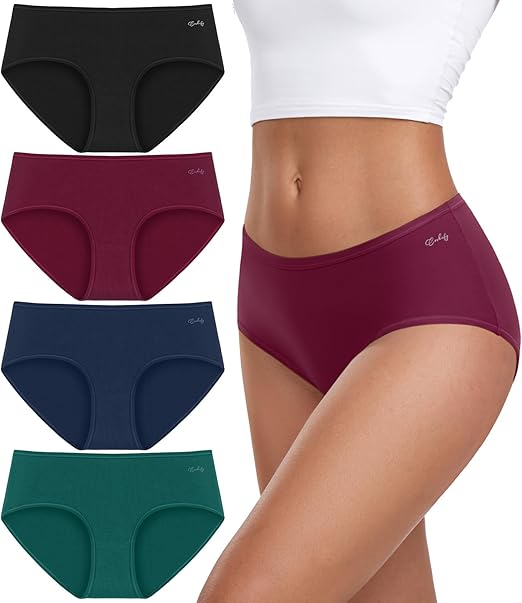 Womens Underwear Cotton Low Rise Briefs Full Coverage Hipster Panties Breathable Ladies Bikini 4 Pack