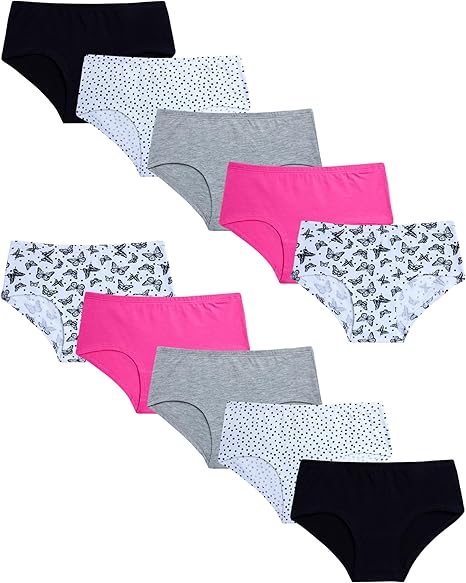 Girls' Underwear – 10 Pack Stretch Soft Cotton Hipster Briefs Underwear - Panties for Girls (Size: 7-16)