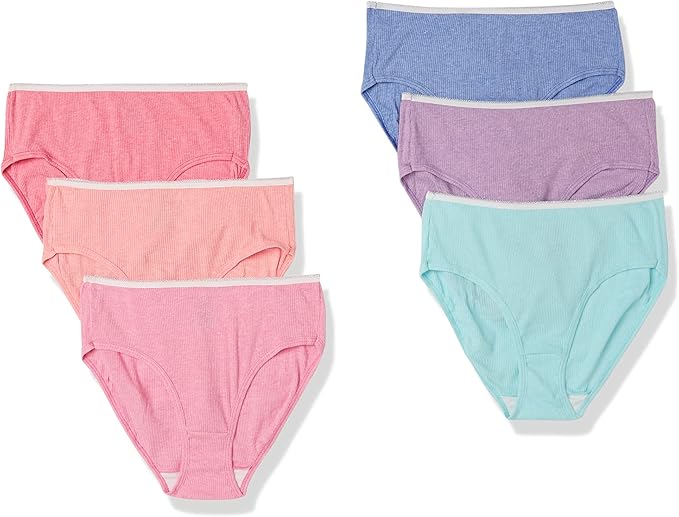 Girls' Underwear, Ribbed Moisture-Wicking Tagless Panties, Hipster & Brief, 6-Pack