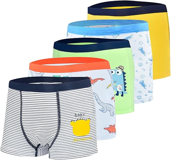 Boys Boxer Briefs, Toddler Kids Soft Cotton Underwear 5 Pairs Little Big Boy Dinosaur Shark Shorts Set