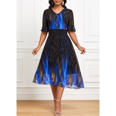 Patchwork Ombre Black V Neck Short Sleeve Dress