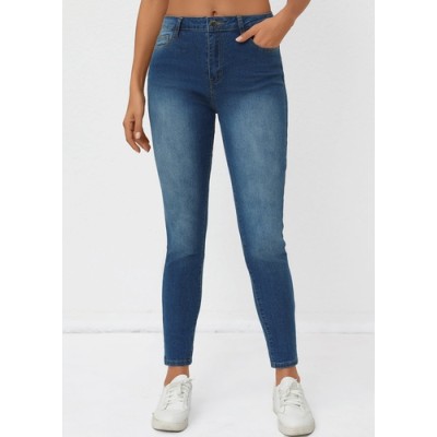 Pocket Denim Blue Skinny Zipper Fly High Waisted Jeans