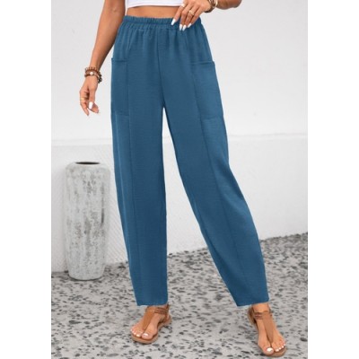 Pocket Peacock Blue Elastic Waist High Waisted Pants