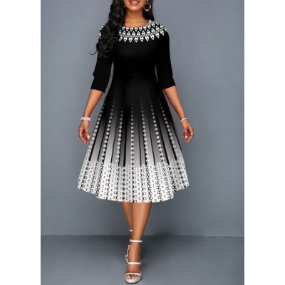 Round Neck Black Ombre 3/4 Sleeve Dress