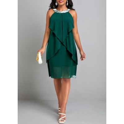 Sequin Green H Shape Round Neck Sleeveless Dress