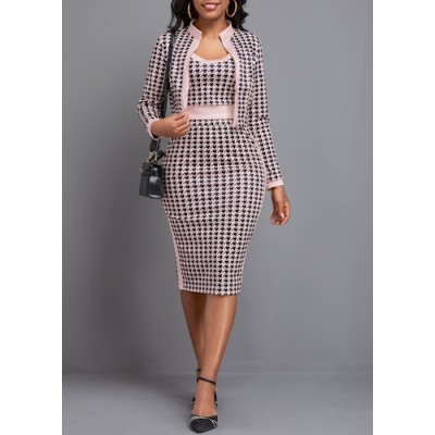Zipper Geometric Print Grey Stand Collar Bodycon Dress