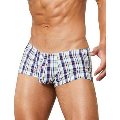 Men's Cotton Low Rise Plaid Stripe Pants Casual Shorts Underwear Pouch Trunks Boxer Underpants