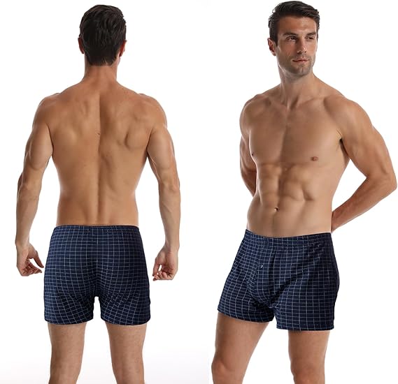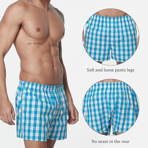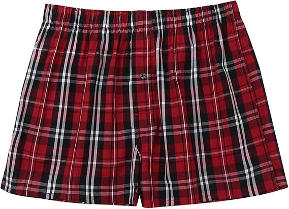 Men's Woven Plaid Boxer Shorts Cotton Trunks Button Classic Tartan Briefs Underwear