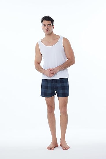 Boxers Shorts Mens Stretch Knit Boxer Shorts Solid Underwear Plaid Striped Cotton Sleep Short Tartan Loose Boxers