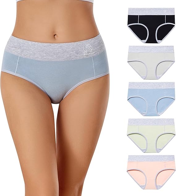 Women's Cotton Stretch Underwear Ladies Mid-high Waisted Briefs Panties 5-Pack