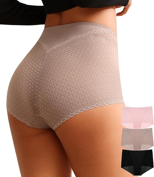 High Waisted Underwear for Women Soft Lace Brief No Show Panties Full Coverage Boy Short Plus Size