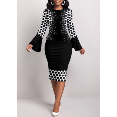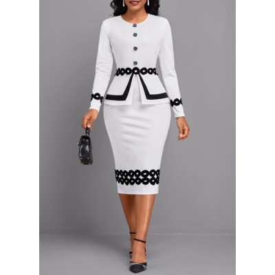 2in1 White Round Neck Long Sleeve Bodycon Dress