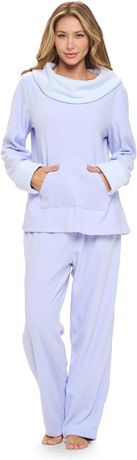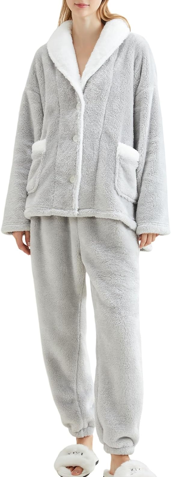 Fleece Pajama Set for Women, Soft Winter Pajamas with Pockets Lounge Set