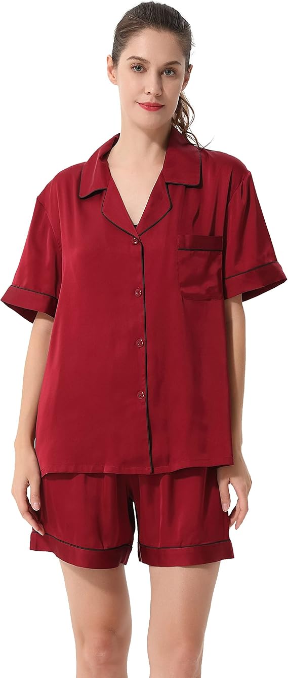Women’s Silk Satin Pajamas Sets Long & Shorts Sleeves Sleepwear Button-Down PJS Sets Loungewear with Contrast Color