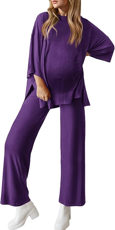 Womens Maternity Pajamas Sets 2 Piece Outfits Long Sleeve Tops and Pregnancy Loungewear Mama Clothes with Pockets