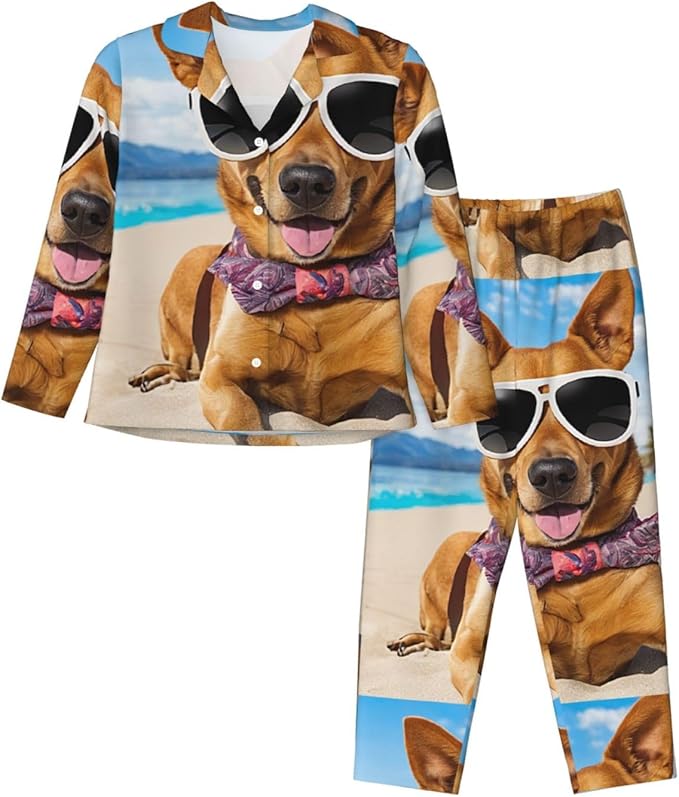 (Chihuahua Dog) Women'S Long Sleeve Pajama Set 2 Piece Sleepwear Set Soft Loungewear For Women
