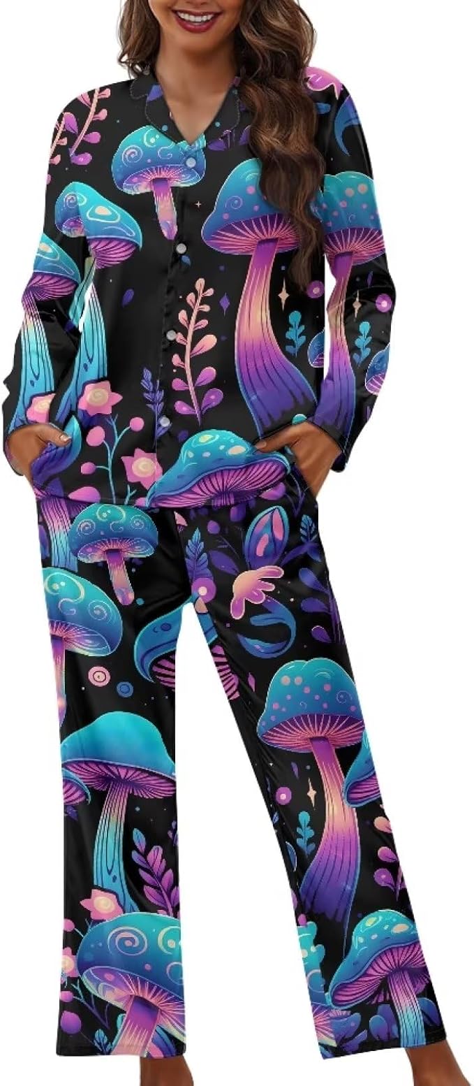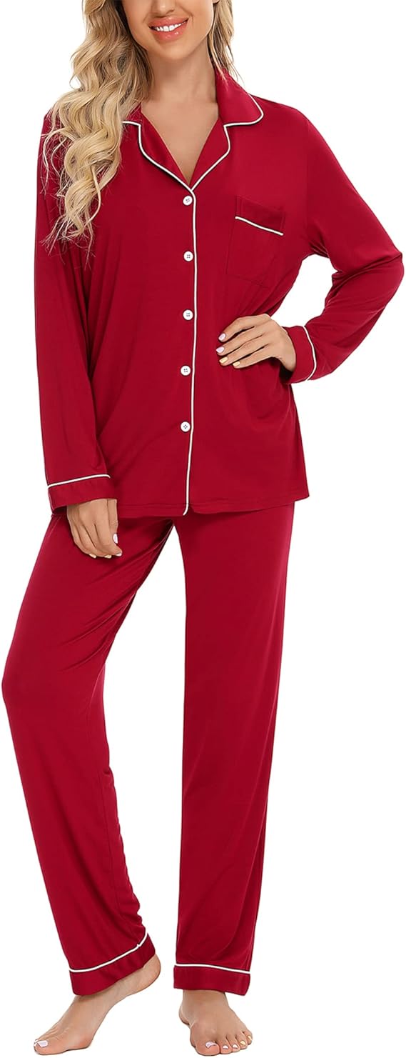 Two Piece Pajama Set for Women Long Sleeve Tops with Pants Comfy Button Down Pjs Set Sleepwear Loungewear