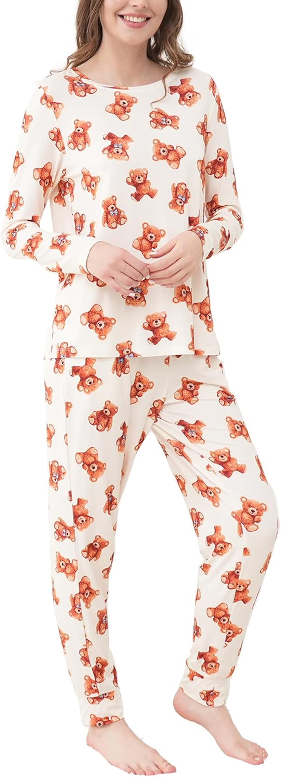 Bamboo Viscose Jogger Pajama Set for Women Long Sleeve Super Soft Sleep Set Comfy Pjs Sets