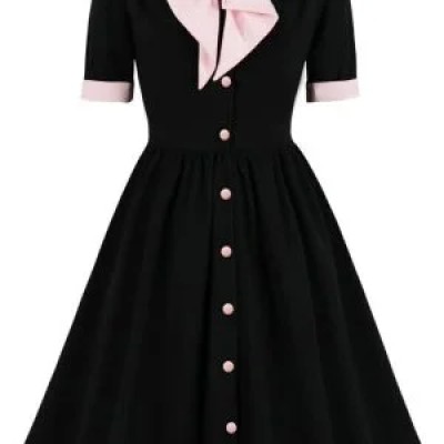 Vintage Women 1940s Bow Tie Neck Dress Retro 40s 50s Button Up Business Work A-line Cocktail Dresses