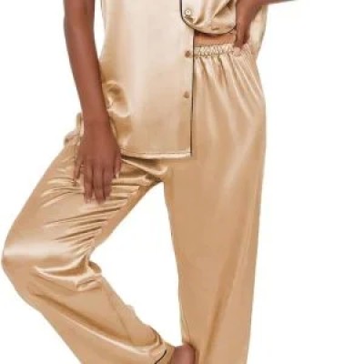 Silk Pajama Set for Women Satin Short Sleeve Sleepwear Button Down Loungewear 2 Piece Pj Sets