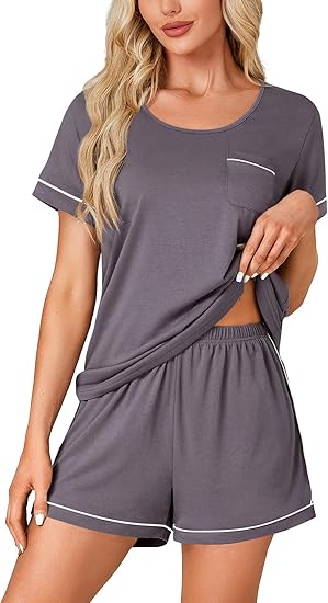 Pajama Set For Women Cute PJS Summer Short Sleeve Shorts Sleepwear